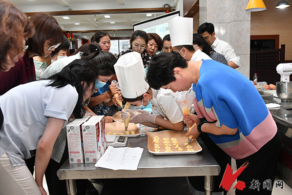 活动现场,喜利来蛋糕连锁店派出专业面点师为教职工面对面讲授了烘焙知识和技巧。随后,大家跟着面点师的示范动作和提示,体验DIY的乐趣,享受着欢乐的烘焙时光。随着烤箱中甜品的颜色不断变得金黄,蛋挞、月饼、曲奇的一阵阵香味让人垂涎欲滴。大家还亲手制作盒子蛋糕,烘焙完毕后,品尝着自己的劳动成果,觉得很有成就感,都说,学会糕点制作不仅是增加了一门“洋气”手艺,积累了新的生活技能,也为居家生活增添了一份情趣。(校工会 供稿 金会刚/摄)