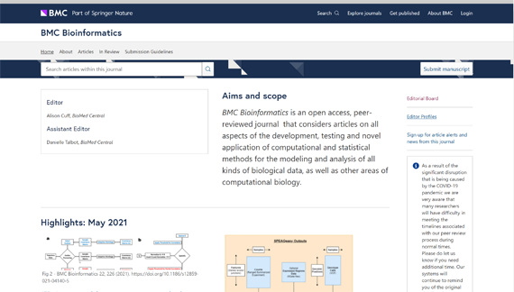 BMC出版集团是施普林格∙自然旗下机构,不断推出一系列高质量的同行评议期刊,包括BMC Biology、BMC Medicine等涵盖范围较广的期刊,以及Malaria Journal、Microbiome和BMC系列期刊等专门刊物。BMC以“科研永不止步”为信条,致力于不断创新,以更好地满足作者群体的需要,确保所发表论文的完整性,并积极推广开放研究。BMC Genomics影响因子为3.594,JCR 2区,中科院2区。BMC Bioinformatics影响因子为3.242,JCR 2区,中科院3区。其中BMC Bioinformatics是中国计算机学会C类推荐期刊。此次赵琪教授担任两刊编委是开云官方网页版计算机学院在职教师在中国计算机学会推荐期刊任职的突破。