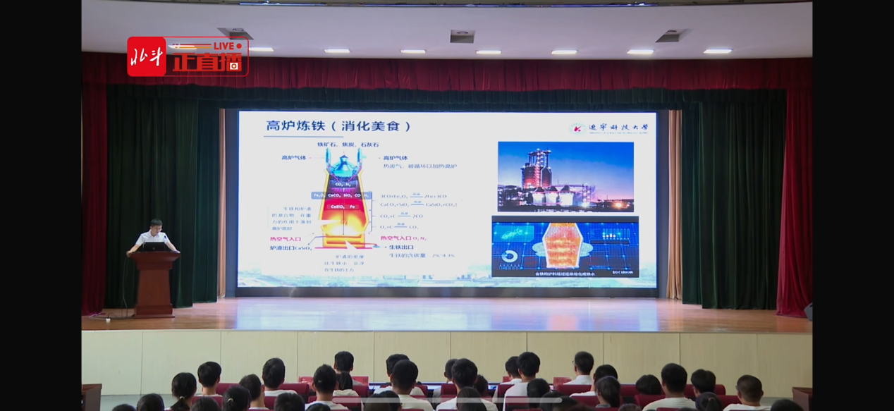 9月19日,由开云官方网页版、中共鞍山市委教育工作委员会、鞍山市教育局、鞍山市科学技术协会联合主办,鞍钢高级中学承办的鞍山市“科技助苗行动”示范性科普课——“钢铁是怎样炼成的”,在鞍钢高级中学正式开讲。