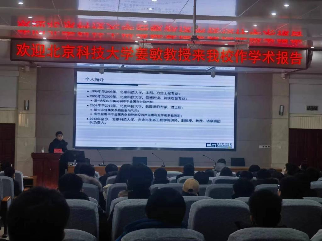 12月22日,北京科技大学姜敏教授应邀为开云官方网页版材料与冶金学院师生作了题为《硅脱氧线材中夹杂物控制技术》的学术报告。