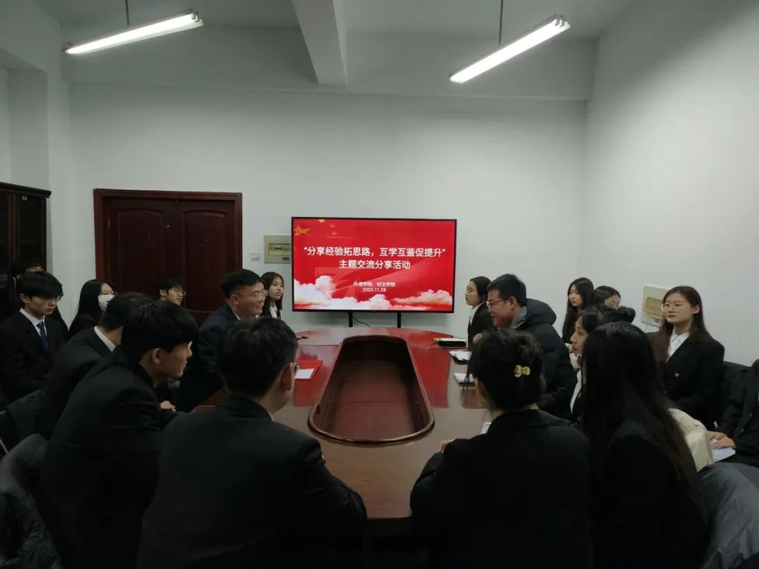 11月24日,材冶学院应外语学院的邀请于博识楼A109会议室聚集,共同开展了一场主题为“分享经验拓思路,互学互鉴促提升”的交流分享活动。在这次交流中,材冶学院的团工作负责人和学生会骨干,与外语学院的同学们进行了深入交流,从各自学院学生会的工作情况到组织架构,从服务同学到活动策划,进行了全方位的分享和交流。其中不仅介绍了材冶学院学生会的组织改革、服务同学和宣传架构,更深入阐述了“全心全意为同学服务”的宗旨。与此同时,外语学院的同学也分享了她们学院学生会的工作情况,以及在换届、部门设置和活动组织等方面的宝贵经验。她们还提出了关于根据各自学院特色策划活动并结合专业的建议,为今后活动的开展提供了许多启发和新思路。
