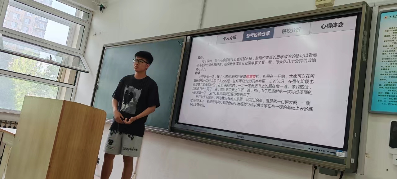 本次会议助力学生了解考研意义,明确考研目标,坚定考研决心,掌握考研方法,为备考生答疑解惑,让学生对考研有初步了解,给予学生备考动力。他们用自己的独特方法,自身实践经历,分享切身体会,将宝贵的经验与见解传递给各位同学。以讲座和互动的形式就考研学习方法、考研目标、择校经验、资料准备、考研时间安排、学习计划制定、考试注意事项等方面的问题进行了详尽的解答。