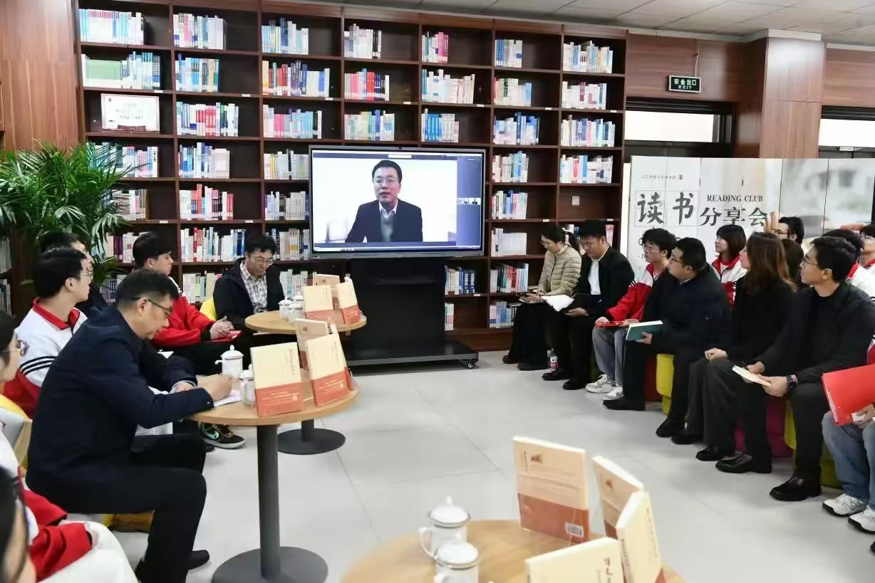 1127日下午,开云官方网页版“顶天立地谈信仰”主题读书会暨为大学生上思想政治理论课活动在学校图书馆经典阅读空间举办,学校党委书记孟劲松走进对接班级材料与冶金学院冶金工程2021-2班开展读书分享,学校党政办公室、党委学生工作部、图书馆负责人,材料与冶金学院班子成员、全体辅导员、冶金工程专业2021-2班全体学生参加读书会,《顶天立地谈信仰——原来党课可以这么上》书作者,十九大、二十大代表,南京航空航天大学博士生导师、教授徐川受邀线上参加活动。