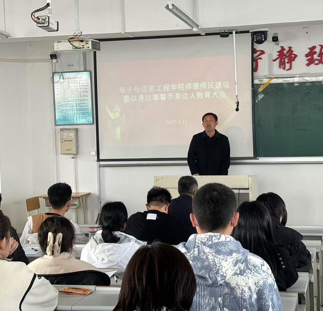2025年3月11日下午,电信学院召开了师德师风建设暨以身边事警示身边人教育大会。会议由学院党委书记王会立主持。