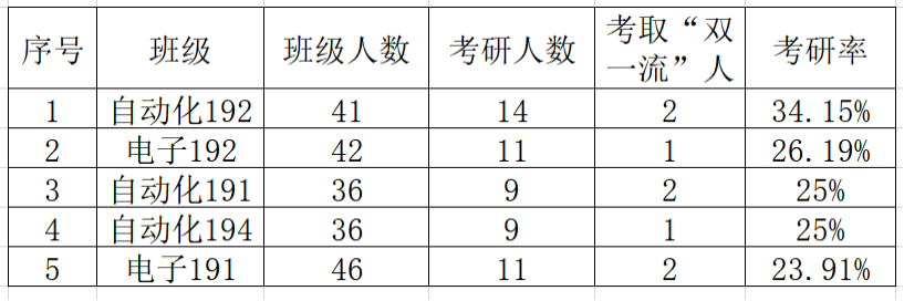2023届毕业生考研前五班级