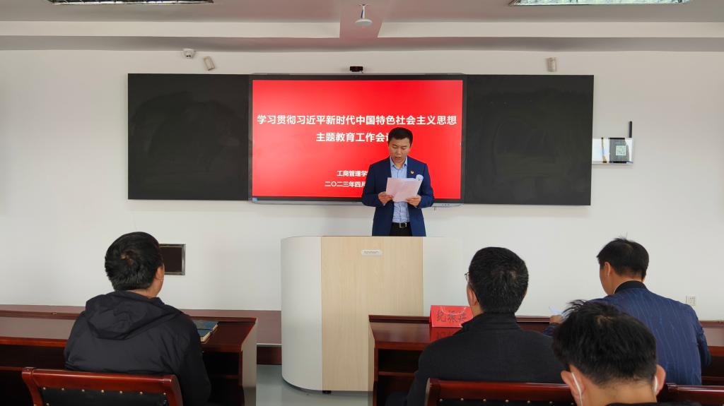 4月13日,工商管理学院在明信楼B513教室召开学习贯彻习近平新时代中国特色社会主义思想主题教育工作会议。会议深入学习贯彻习近平总书记在学习贯彻习近平新时代中国特色社会主义思想主题教育工作会议上的重要讲话精神,贯彻落实学校党委关于开展主题教育的部署要求,对学院深入开展主题教育进行动员部署。学院党委书记董文武主持会议并作动员讲话,学校主题教育第五推进组到会指导。