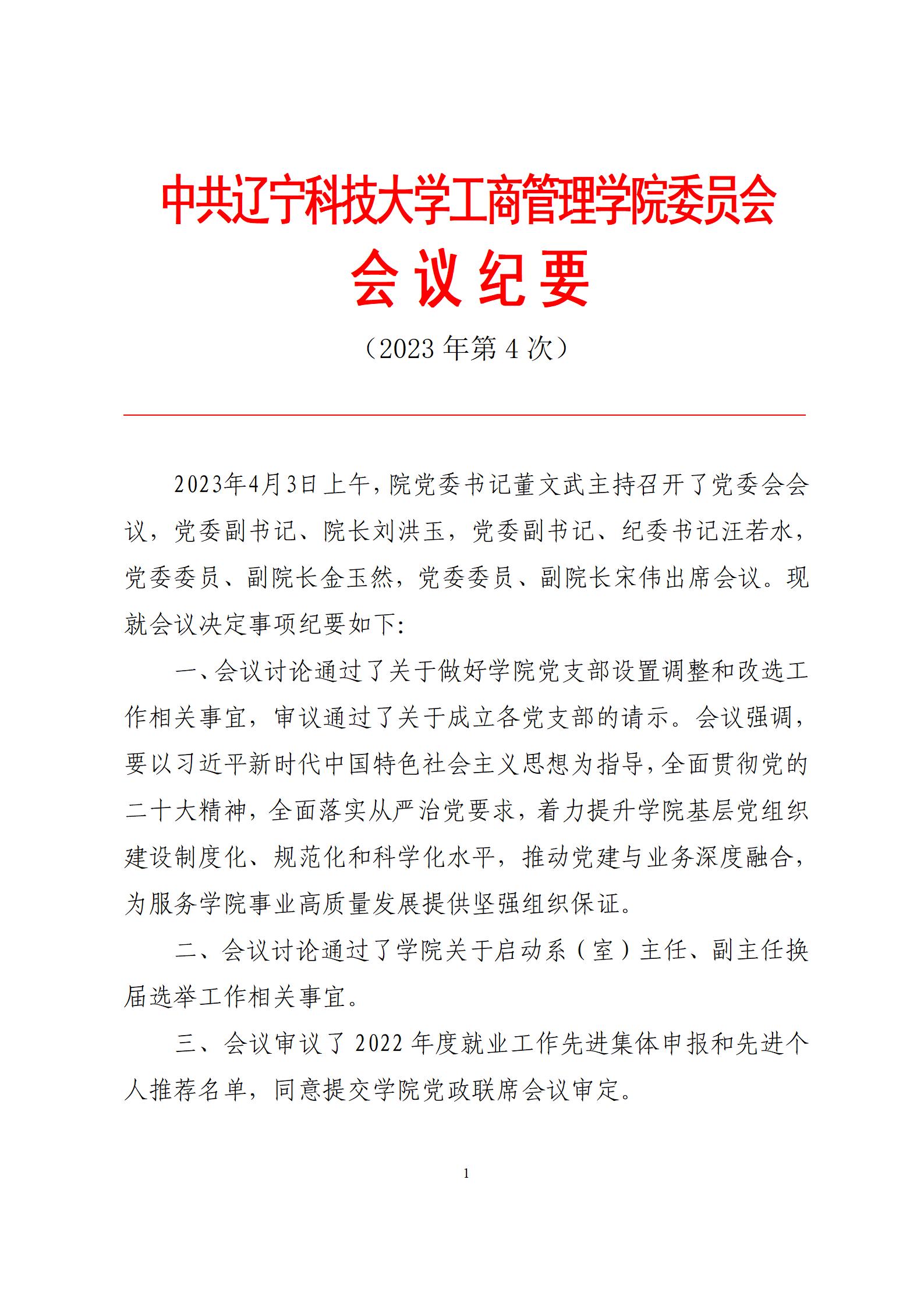 中共开云官方网页版工商管理学院委员会会议纪要(2023年第4次)