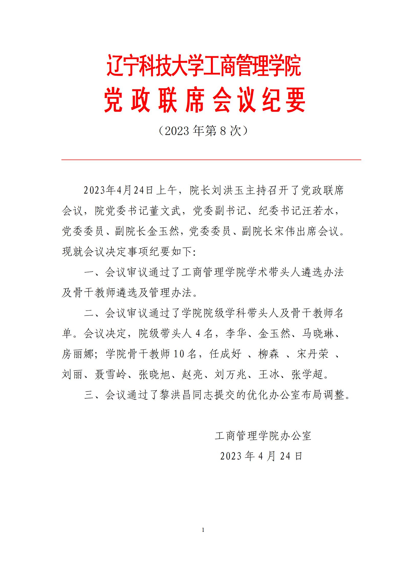 开云官方网页版工商管理学院党政联席会议纪要(2023年第8次)
