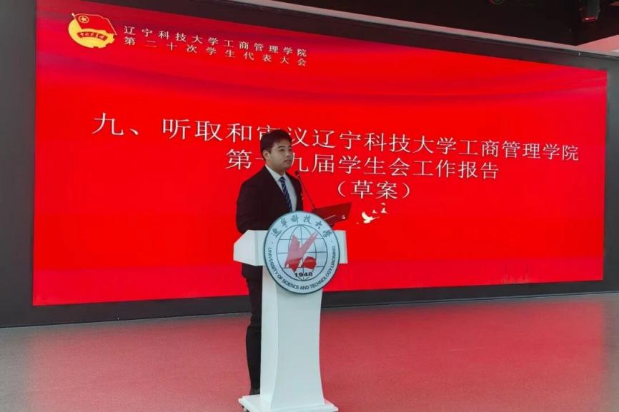 9月25日,工商管理学院第二十次学生代表大会在大学生活动中心圆满召开。本次大会由学院第十九届学生会办公室负责人李泽远主持,学院团委书记赵辉、第十九届学生会、分团委、新媒体中心全体成员与各年级学生代表共同参会。