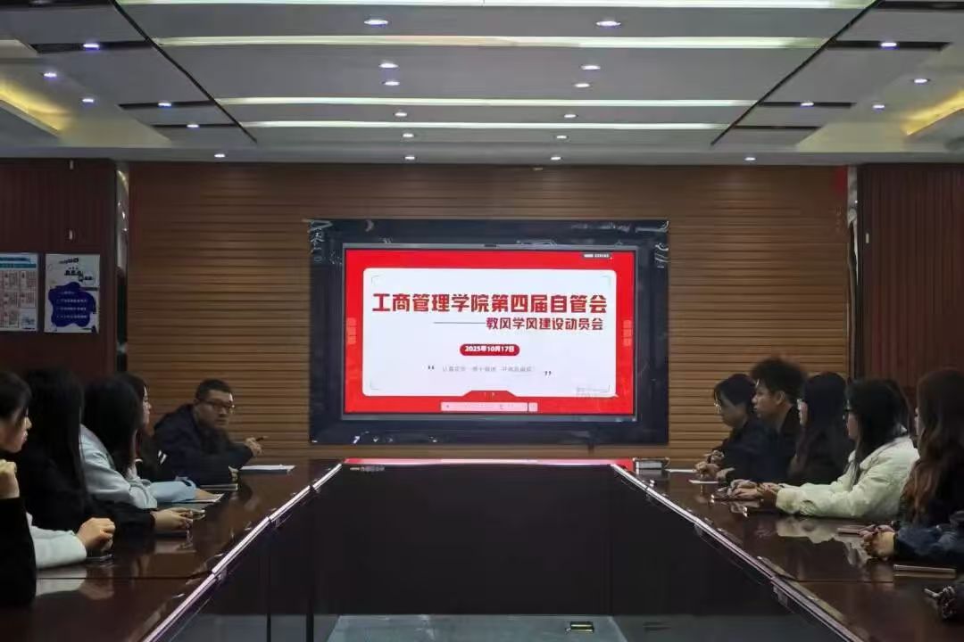 为深入贯彻落实学院教风学风建设专项行动要求,推动学风建设十项举措落地见效,10月17日,工商管理学院在明信楼B411教室召开“学风建设专项行动”动员大会,面向全体学生骨干进行专题动员和部署。学院学办主任奚彦彪出席会议并讲话,23级、24级全体学生骨干代表参加会议。