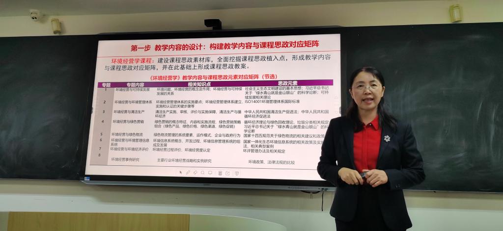 研讨会邀请学院朱晓林和王冰两位老师做了中心发言。朱晓林老师是辽宁省本科教学名师、辽宁省课程思政教学团队负责人,主讲的《环境经营学》被评为国家一流课程,在课程思政建设方面有着丰富的工作经验。她以《德业双休:环境经营学课程思政的实践与探索》为题开展交流,从课程背景、设计与实施、特色与创新、成效与感悟等四个方面分享了课程思政建设经验,她强调了“专业教育”与“课程思政”的深度融合,提除了“三步三位一体化”课程设计理念,指出“教师就是行走的思政”。王冰老师曾荣获第七届西浦全国大学教学创新大赛二等奖,第四届全国高校混合式教学设计创新大赛选拔赛一等奖。她围绕信息化教学进行了系统讲解,分享了自身的教学经验,强调了SPOOC教学中的信息化手段,尤其对学习通软件的使用技巧进行了现场教学与操作指导。