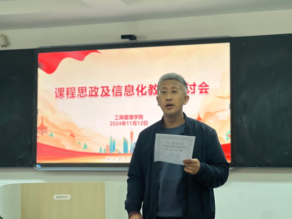 2024年11月12日,管理学院在明信楼B513室召开了课程思政与信息化教学研讨会,学院领导及全体专任教师参加会议。会议由学院副院长金玉然主持。