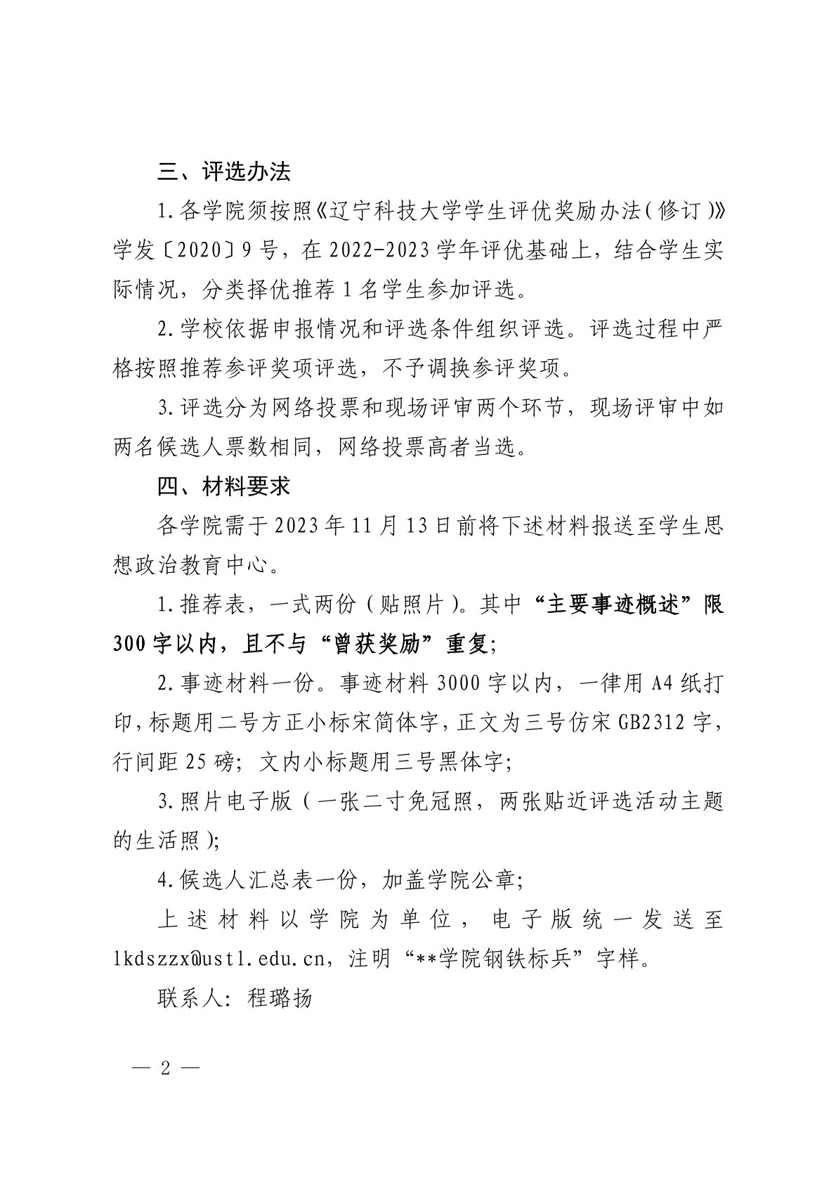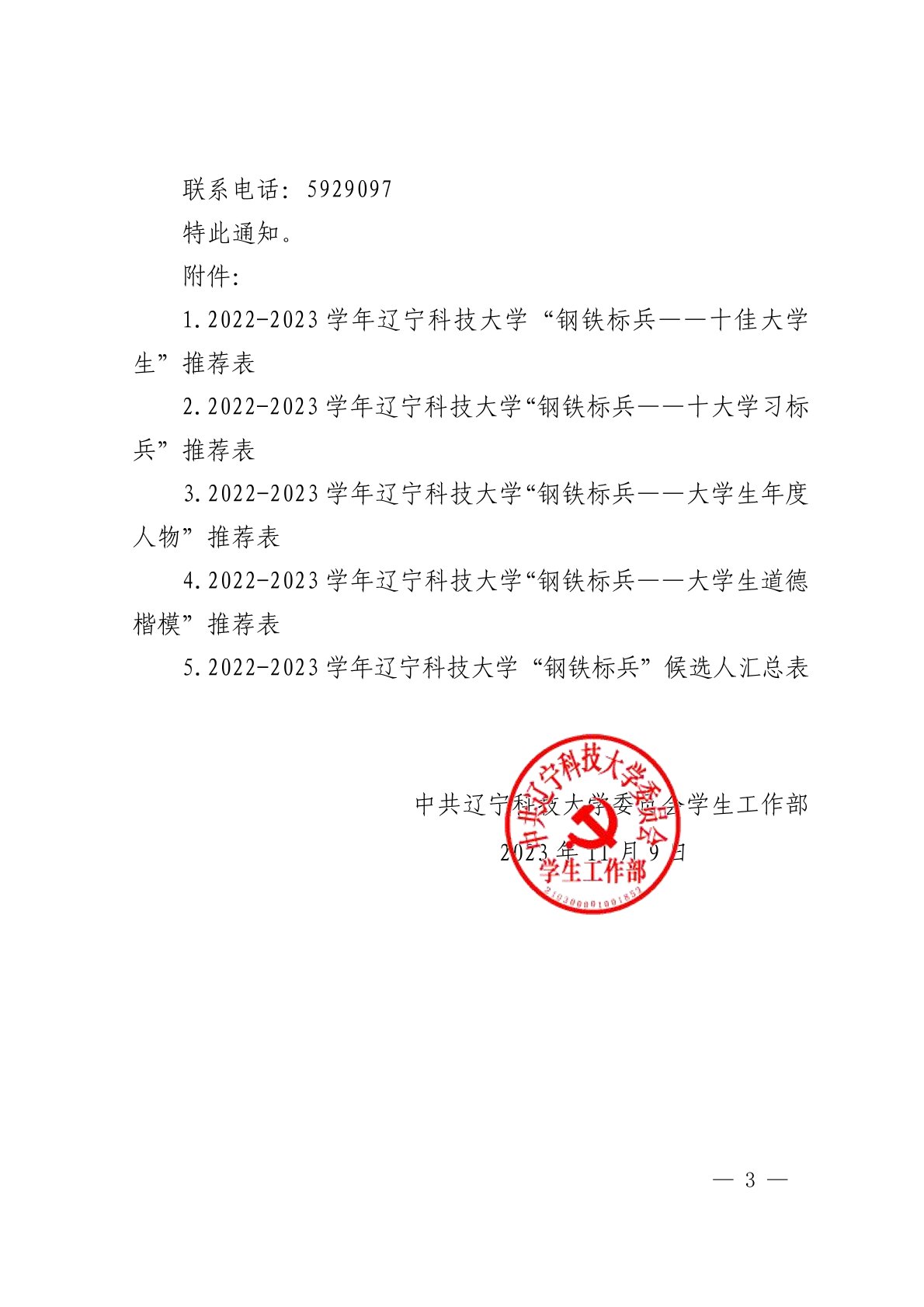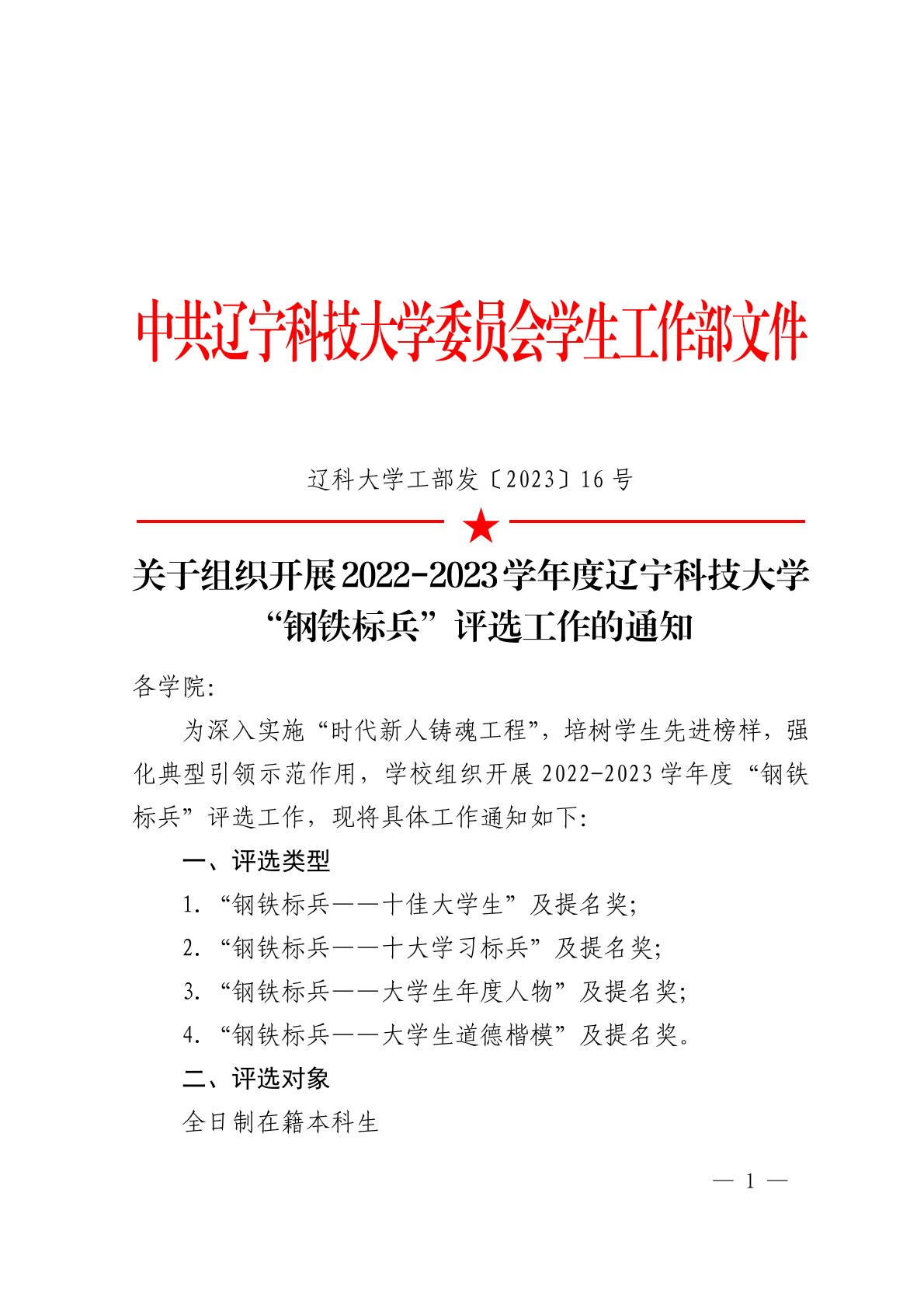 关于组织开展2022-2023学年度开云官方网页版“钢铁标兵”评选工作的通知