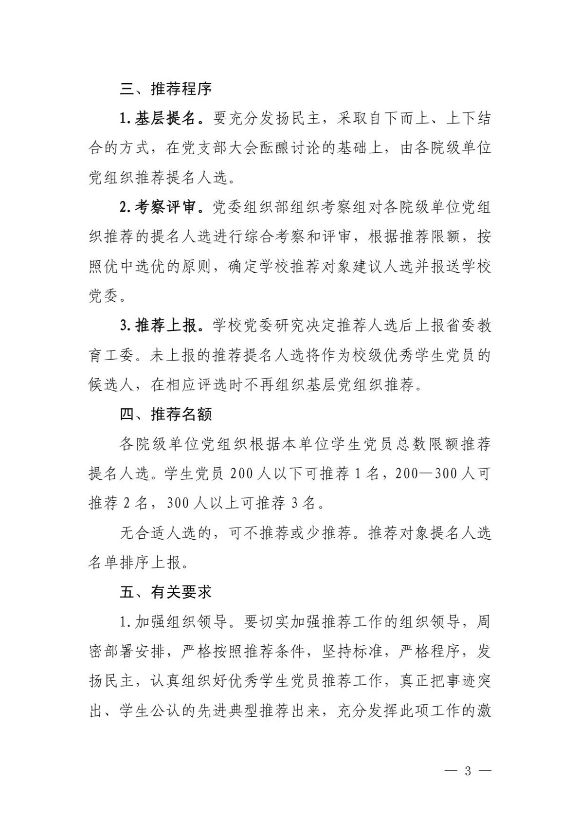 关于推荐优秀学生党员参评辽宁省优秀大学生党员的通知