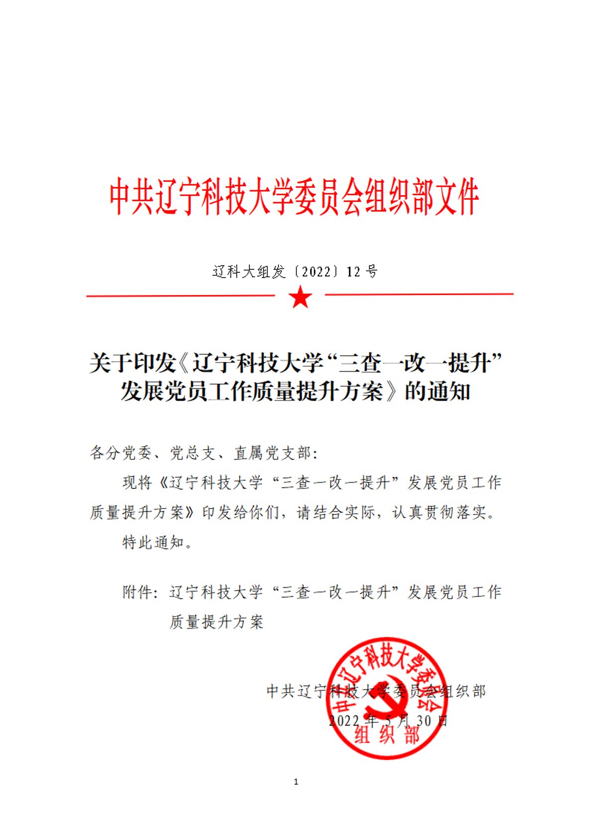 关于印发《开云官方网页版“三查一改一提升”发展党员工作质量提升方案》的通知