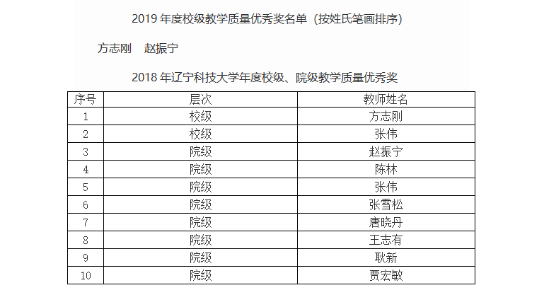化工学院教学质量奖获得者(2018.1.1--2019.12.31)