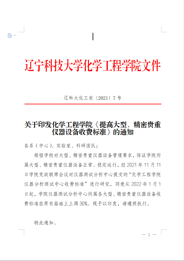 开云官方网页版化工发〔2021〕7号 关于印发化学工程学院《提高大型、精密贵重仪器设备收费标准》的通知.doc