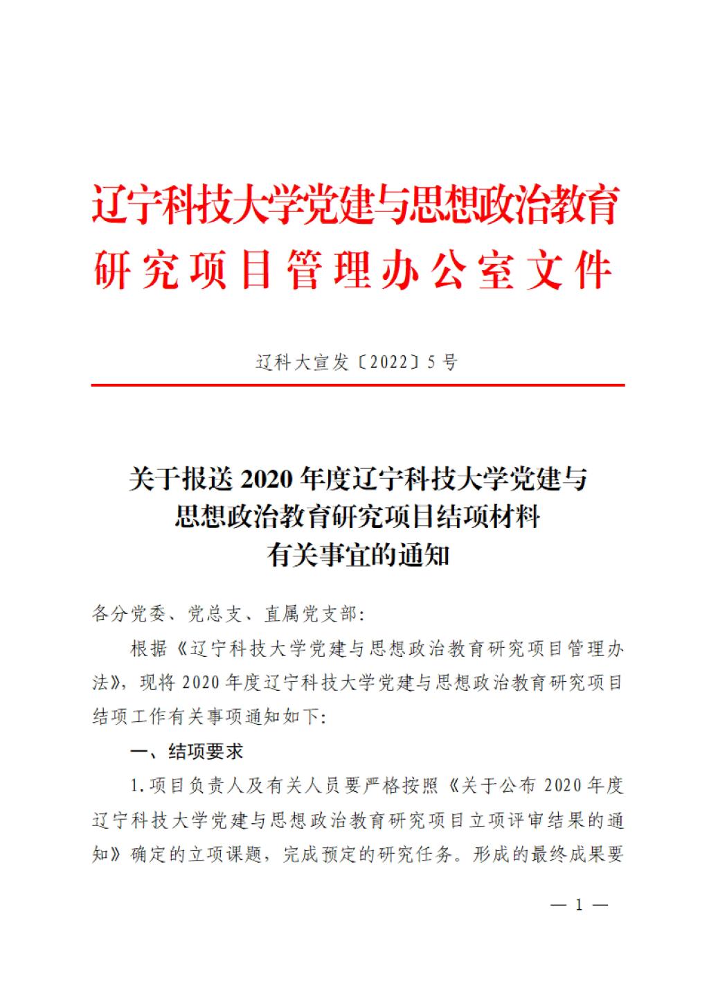关于报送2020年度开云官方网页版党建与思想政治教育研究项目结项材料有关事宜的通知