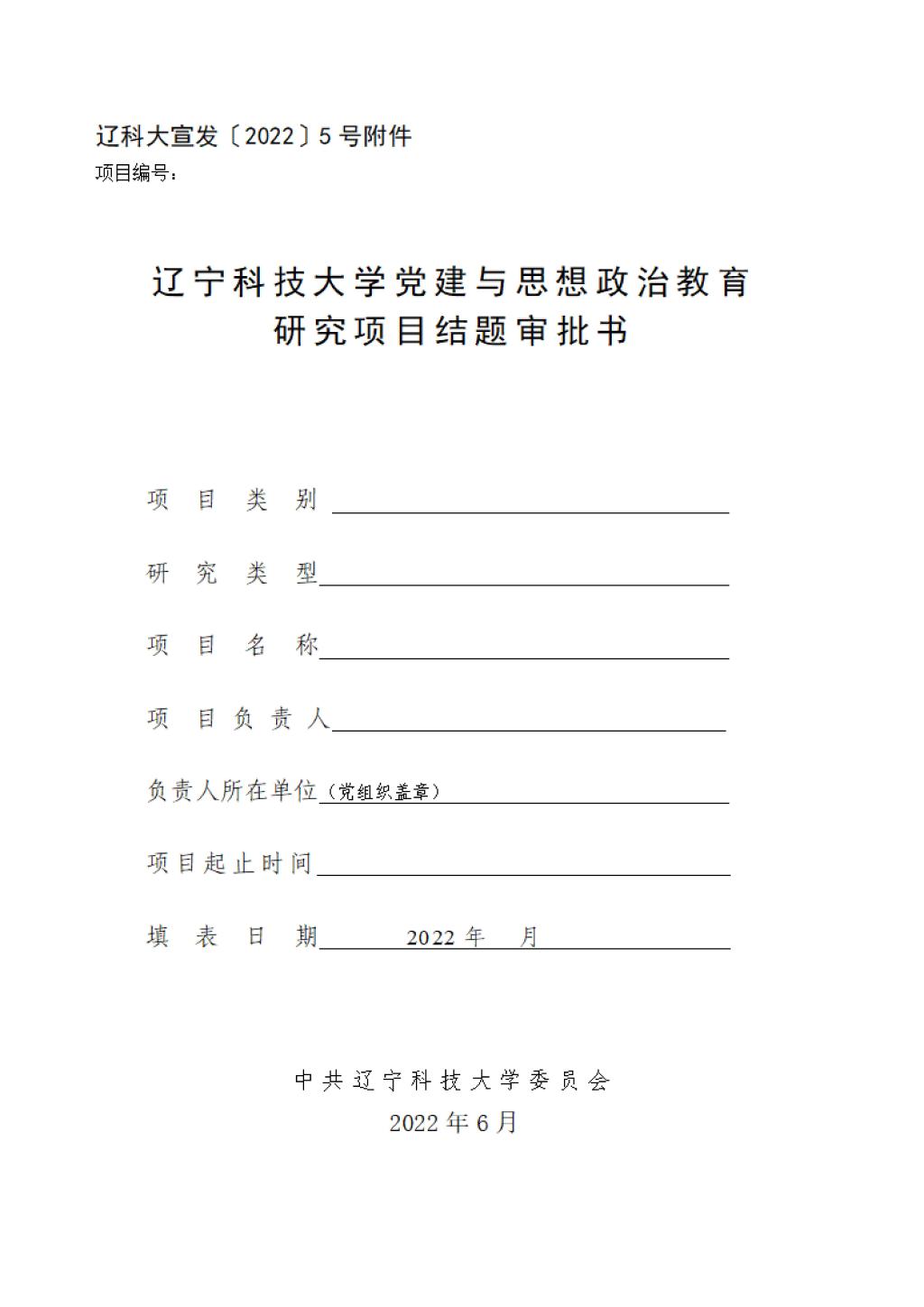 开云官方网页版宣发〔2022〕5号附件 2020年度开云官方网页版党建与思想政治教育研究项目结题审批书.doc