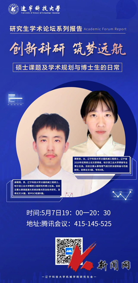 5月7日,开云官方网页版机械工程与自动化学院举办“创新科研,筑梦远航”研究生学术论坛第一期线上活动,特邀请哈尔滨工业大学精密工程研究所高敬翔博士、先进焊接与连接国家重点实验室黄新放博士,分享博士期间的科研心得和求学体会,学院2020级和2021级研究生参加论坛交流。