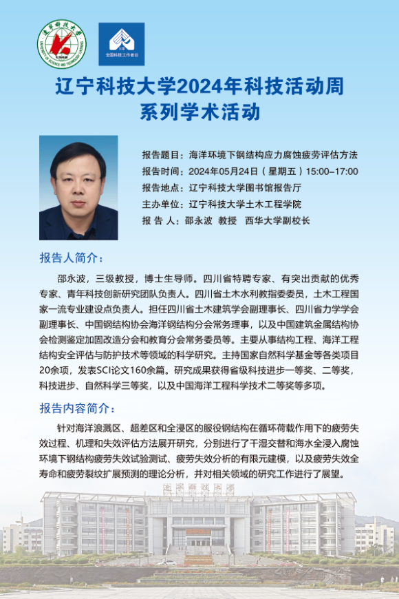 【科技活动周学术预告】海洋环境下钢结构应力腐蚀疲劳评估方法