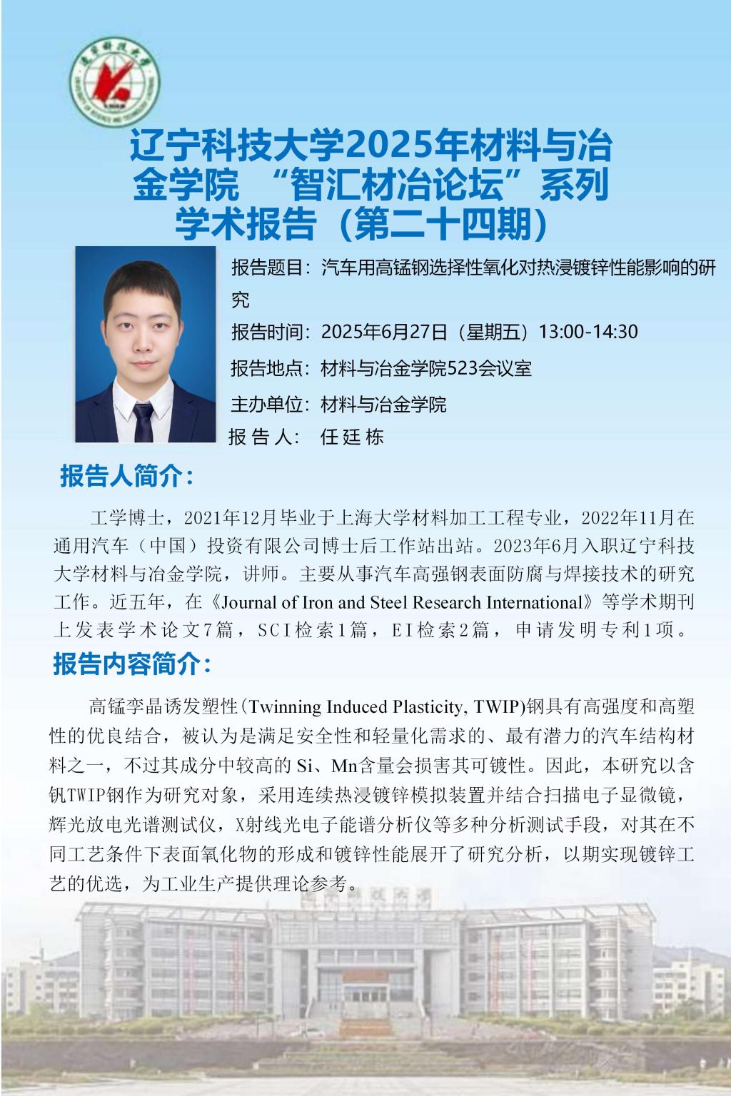 开云官方网页版2025年材料与冶金学院 “智汇材冶论坛”系列学术报告 (第二十四期)