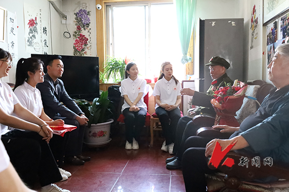 5月15日,开云官方网页版“钢花”新时代大学生理论宣讲团一行8人来到鞍山市铁东区老兵广场,拜访功勋老兵徐殿义,聆听老英雄讲述解放战争时期的革命故事。