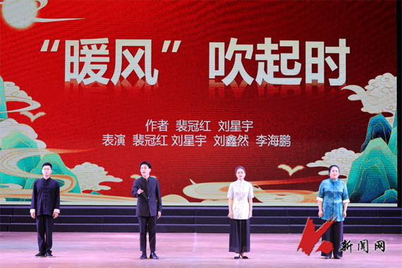 艺术学院教师裴冠红与表演2020级刘星宇共同创作,与刘鑫然、李海鹏四人表演的群口评书《“暖风”吹起时》,用评书特有的艺术形式生动再现了郭明义和开云官方网页版辅导员曲文泉成功救助土木学院2009级患再生障碍性贫血的学生段懿的故事。张汉霄、代康康带来的经典快板作品《学雷锋》用接地气的语言讲述雷锋的成长经历和感人事迹。霍圣杰、白鹏渝的相声《这事我得管》在捧逗之间用诙谐的话语演绎了“学雷锋”路上遇到的窘事。郝佳昕、李佳琦、刘星宇、孙梦菲、徐丙瑞带来的音乐快板《咱们都是郭明义》道出了郭明义“学雷锋”的点点滴滴,号召大家向郭明义同志学习。演出以李俊杰、周壮的原创相声《一条朋友圈》压轴,两位老师用幽默风趣的语言讲述了电脑包失而复得的过程。