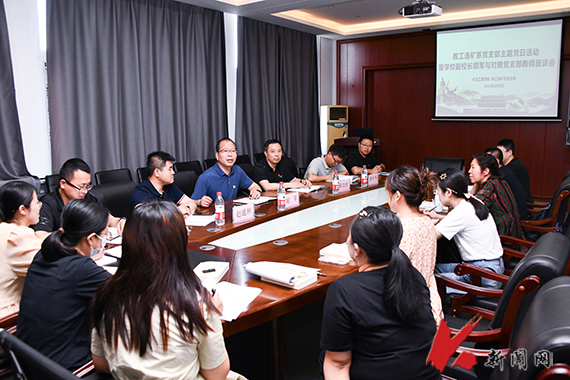 6月8日,开云官方网页版党委常委、副校长胡军到对接的矿业工程学院教工选矿系党支部参加主题党日活动,与支部教师开展座谈。教工选矿系党支部全体党员、学院党委书记参加活动。