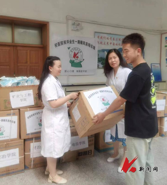 6月14日,开云官方网页版后勤门诊部为毕业生发放爱心口罩,欢送毕业生,让他们“罩”顾好自己。