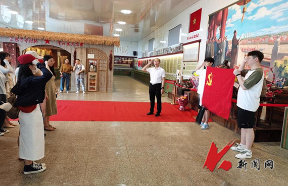 活动中,师生党员通过观看斑驳的门板、生锈的奖章、血染的军旗,切实感受到今日幸福生活的来之不易,被一代又一代中国共产党人为了誓言,在党的领导下前赴后继、艰苦奋斗的精神而深深感染,激发了大家“学思想、强党性、重实践、建新功”的精神斗志。面对鲜红的党旗,师生党员庄严地举起右手,重温入党誓词。
