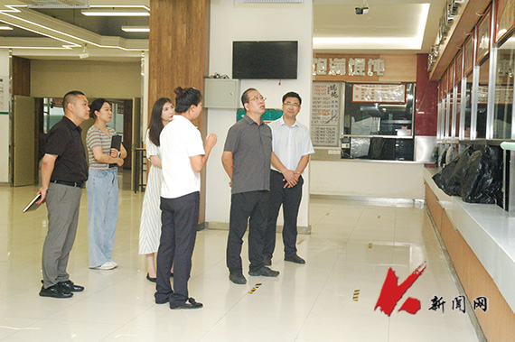 胡军一行先后走访了新生寝室、宿舍自助浴池及热水间建设场地、墙面粉刷及卫生间改造场地、绿茵餐厅、大学生浴池、超市、桃园餐厅、新1舍浴池、快递及周边商户、校门诊部、龙源学生生活区和科技园等地,对关乎师生工作、学习和生活的每一个细节,都仔细询问和详细了解,全面督查了新生宿舍改造、学生宿舍自助浴室、校园绿化建设、餐厅食品卫生安全、医疗服务保障、快递服务保障、电表安装等情况,并听取了相关负责人就秋季开学服务保障等工作的汇报。