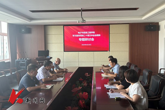 电子与信息工程学院召开学习宣传党的二十届三中全会精神专题研讨会,学院班子成员及副科级以上领导干部参加会议。