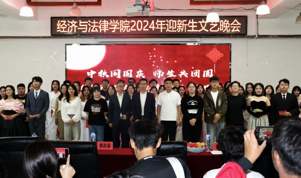 共赏中秋月,人间话团圆。9月17日晚,经法学院于明德楼大学生活动中心举办了以“中秋同国庆 师生共团圆”为主题的迎新生文艺晚会。学院党政领导及辅导员、团学骨干、新生班导生以及全体2024级新生近300人观看了本场演出。