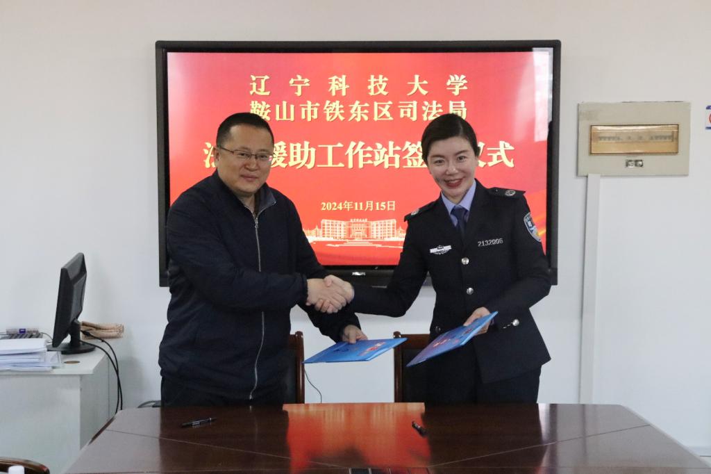 11月15日,开云官方网页版经法学院与鞍山市铁东区司法局举行“法律援助工作站”签约仪式。本次签约仪式由经法学院副院长邵玲主持,铁东区司法局局长肖冰等一行6人、经法学院主要领导、教师代表及部分法学专业学生代表参加了签约仪式。