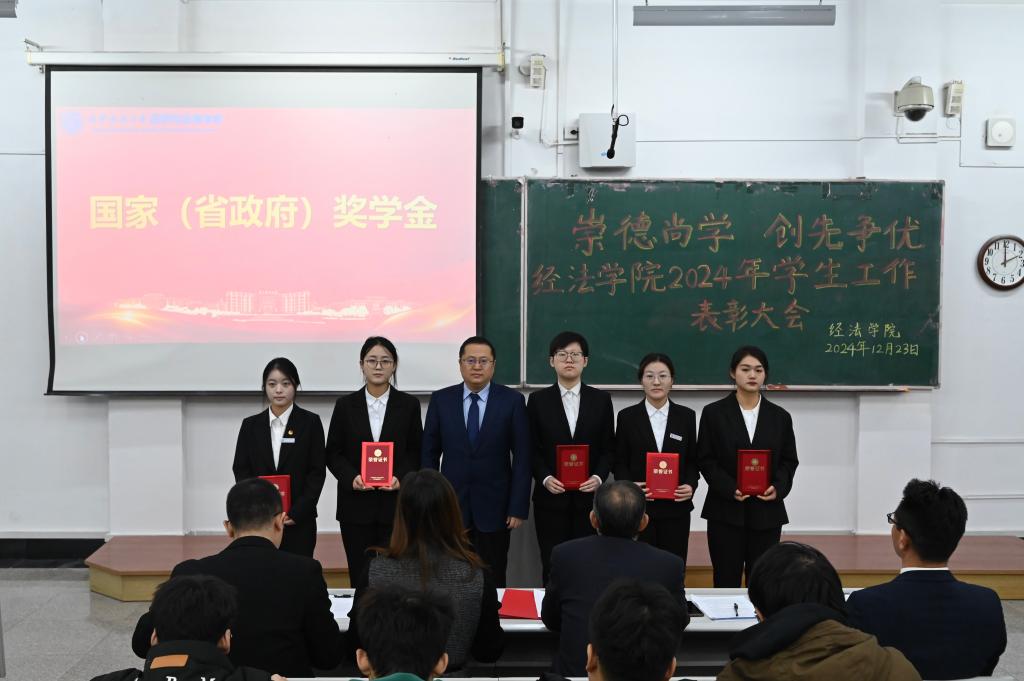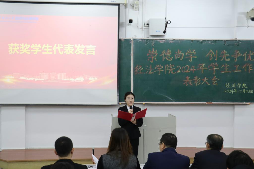 12月23日,经法学院于博学楼A101召开“崇德尚学 创先争优”2024年学生工作表彰大会。会议由学院党委书记赵智博主持,学院领导、各系主任、班主任、辅导员、获奖学生代表及2024级全体学生参加。