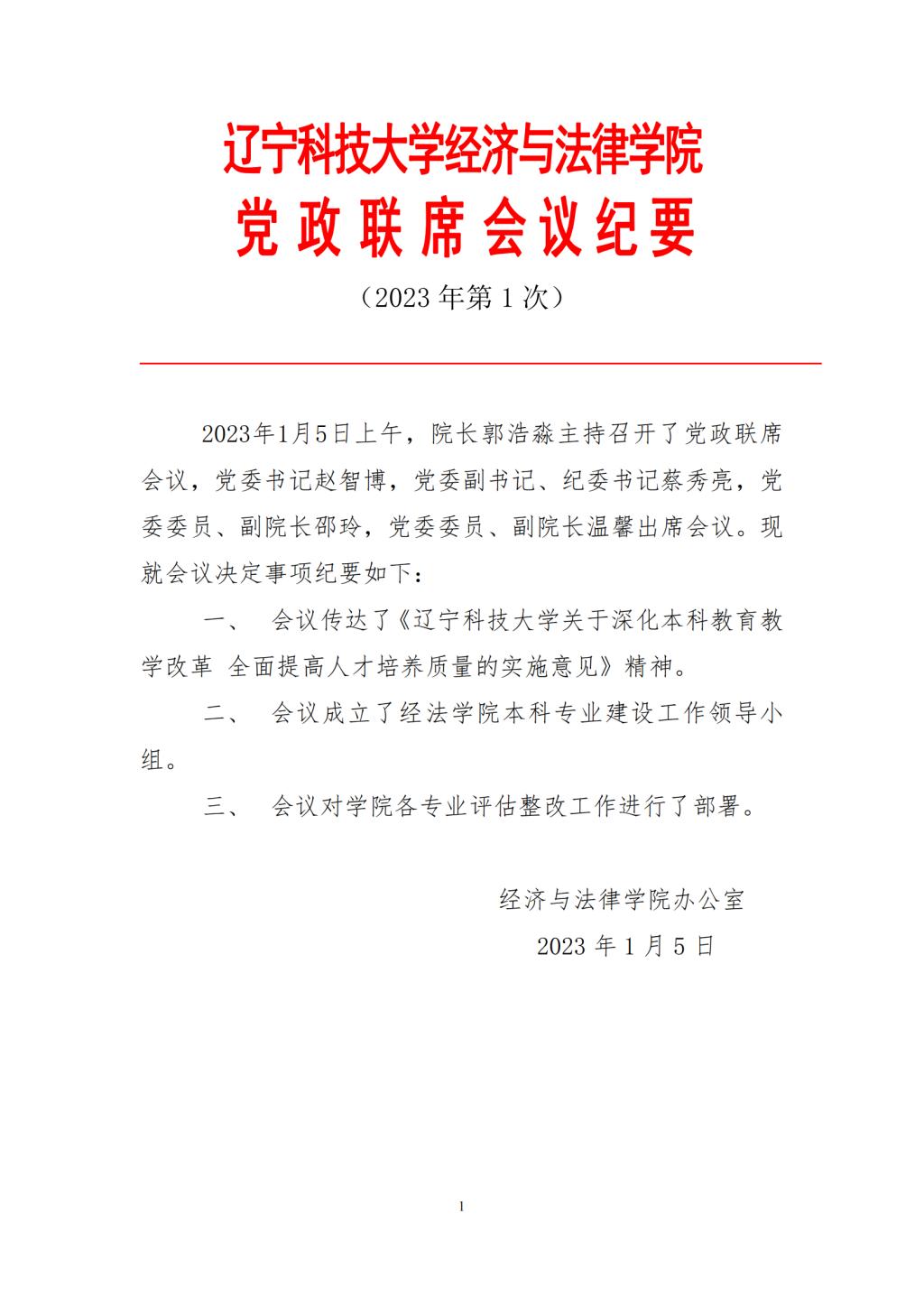 开云官方网页版经济与法律学院党政联席会会议纪要(2023年第1次)
