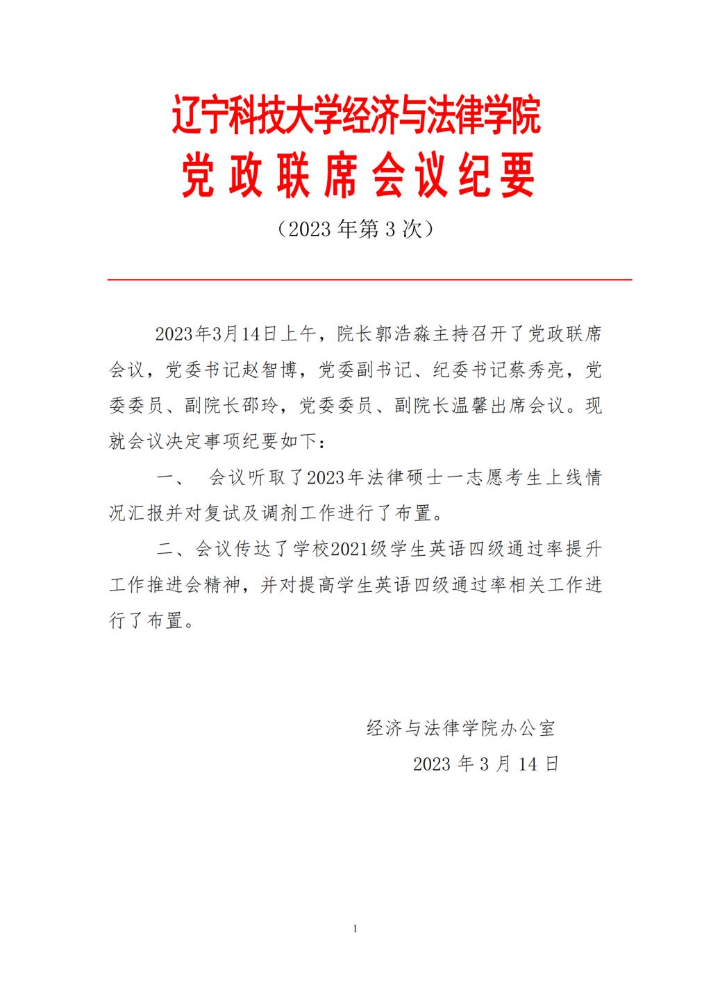 开云官方网页版经济与法律学院党政联席会会议纪要(2023年第3次)
