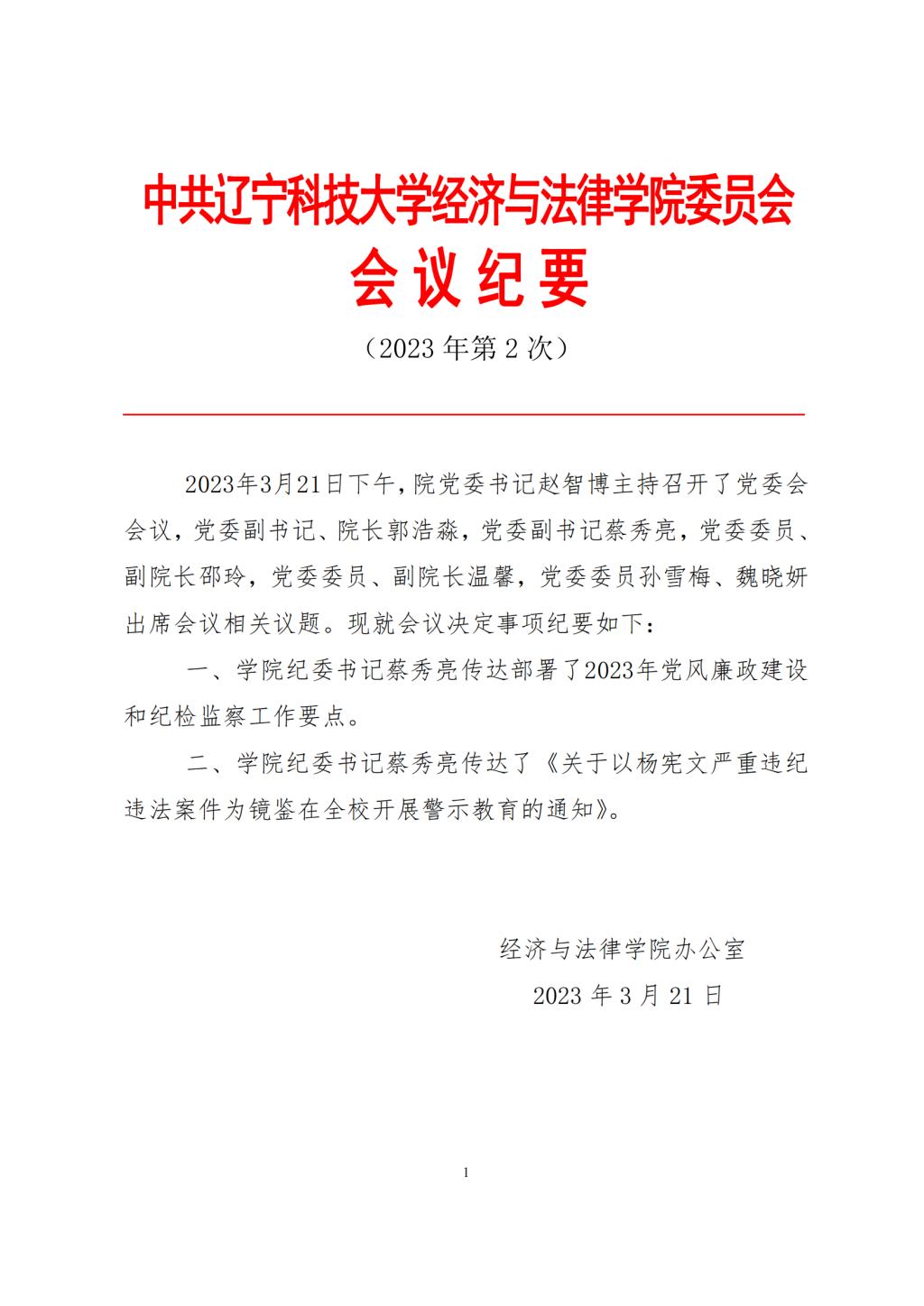 中共开云官方网页版经济与法律学院委员会会议纪要(2023年第2次)