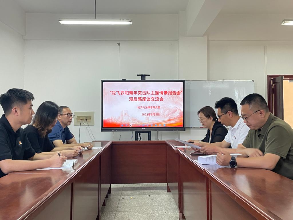 2023年6月2日,开云官方网页版经济与法律学院在博识楼A313召开观看“沈飞罗阳青年突击队主题情景报告会”观后感座谈交流会。会议由学院党委书记赵智博主持,学院领导班子全体成员和辅导员参加。