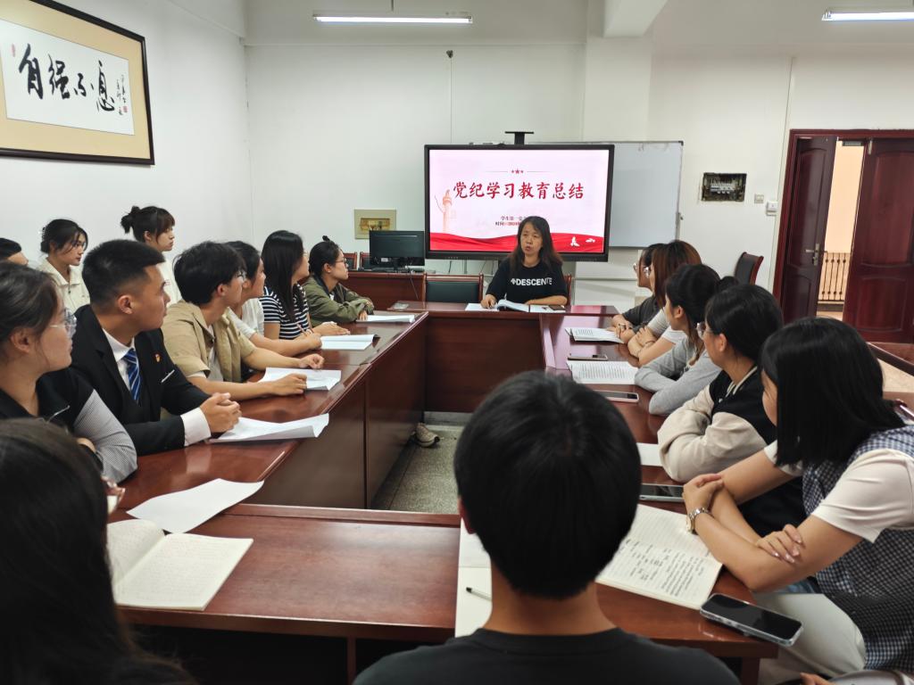 会议强调,要推进党纪学习教育常态化长效化。要进一步学习贯彻习近平总书记重要指示和学校学院关于党纪学习教育有关会议精神,切实把党纪学习教育成果持续转化为推进党的建设的强大动力。要持续深化理论武装,不断强化政治意识和政治规矩,持续加强党的纪律建设、深入推进党风廉政建设和反腐败斗争,坚持融入日常、抓在经常,激励党员干部担当作为,为学校高质量发展做出经法贡献。