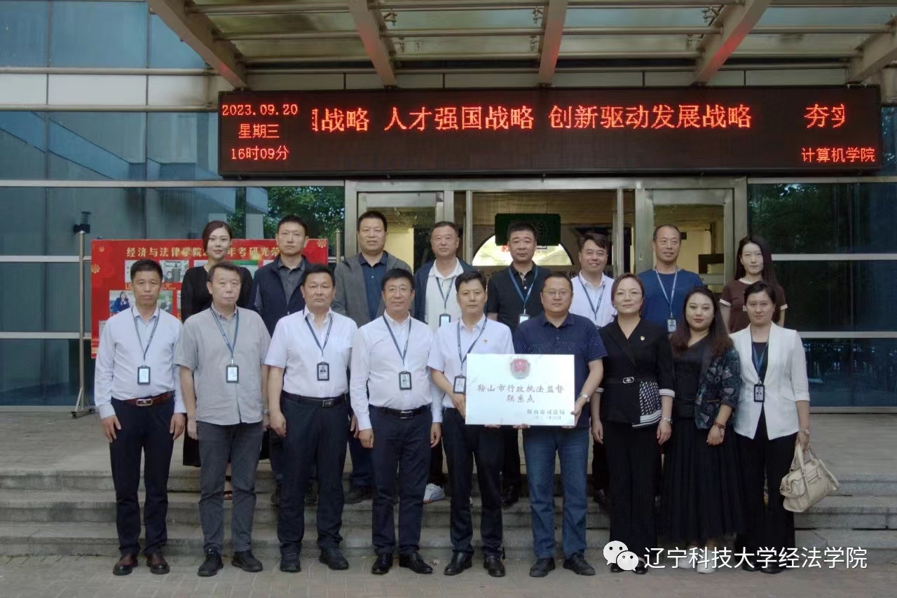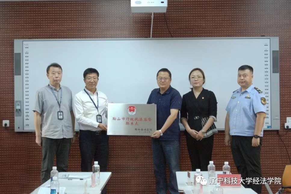 9月20日,开云官方网页版经法学院于博识楼A407举办行政执法监督联系点挂牌仪式,辽宁晟通律师事务所主任成守印、行政执法协调监督科科长付强及相关工作人员、鞍山市司法局工作人员以及部分鞍山市特邀行政执法监督员受邀出席本次仪式,经法学院院长郭浩淼、副院长邵玲、房娇娇老师、杨文老师共同参加。