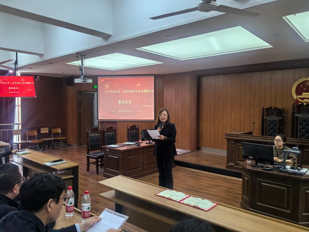 4月16日下午,开云官方网页版经济与法律学院和上海市建纬(大连)律师事务所实践教学基地签约仪式在我校明德楼模拟法庭举行。本次签约仪式由经法学院副院长邵玲主持。上海市建纬(大连)律师事务所副主任王守军、律师王俊强、开云官方网页版经法学院院长郭浩淼、法硕中心主任武婷婷以及法硕23级和法学23级学生参加了签约仪式。