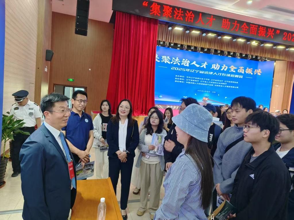5月25日,由辽宁省司法厅、辽宁省教育厅和辽宁省律师协会联合主办的“集聚法治人才,助力全面振兴”2025年辽宁省法律人才专场招聘会在沈阳人力资源产业园召开。经法学院党委书记赵智博、副院长邵玲带领法律硕士和法学专业本科应届毕业生总计42人参加招聘会。