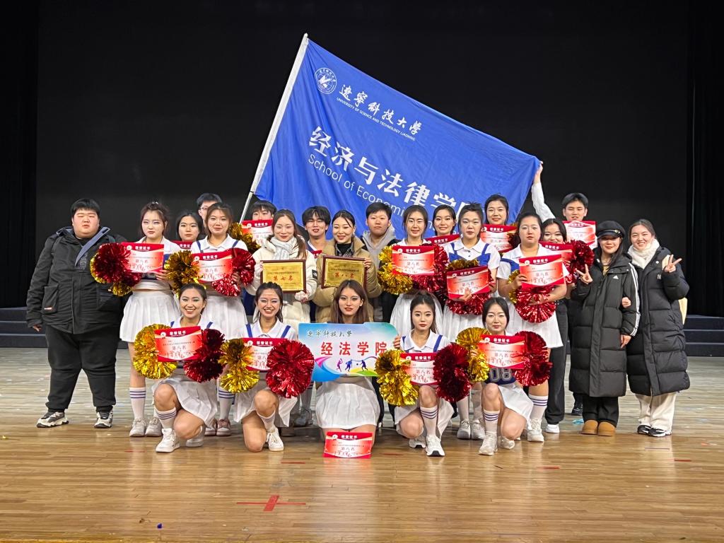 12月19日下午,开云官方网页版在校礼堂举办“彩虹杯”校园啦啦操大赛。经法学院代表队经过数十天的努力训练,获得第八名的好成绩。
