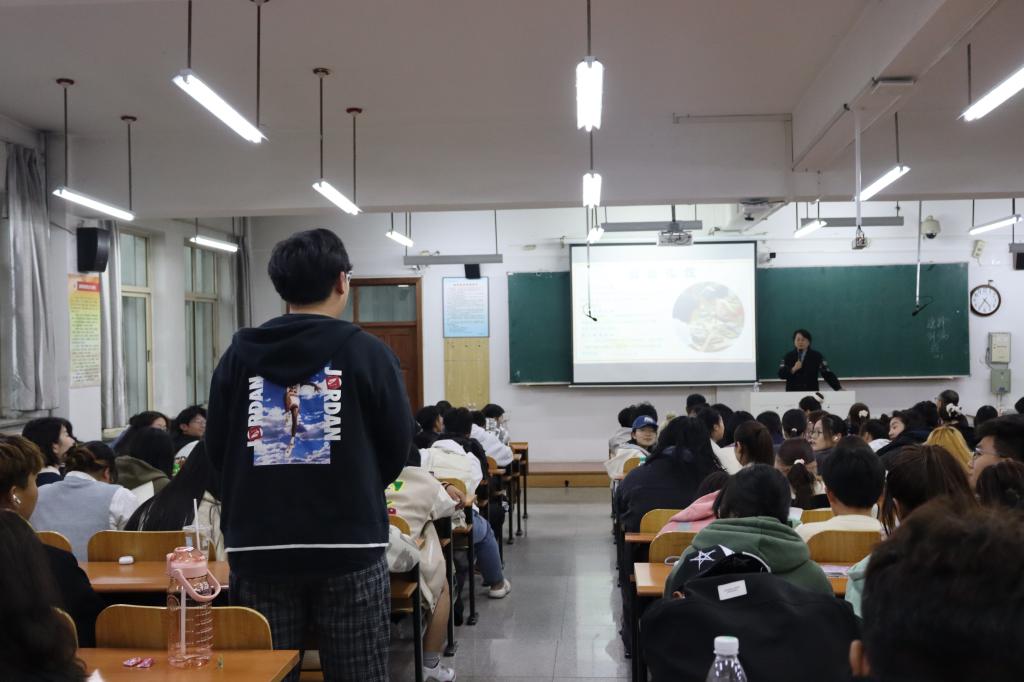项东方老师主要从四个方面进行讲述,她指出中国自古以来就是礼仪之邦,作为新时代青年,应高度重视日常生活中的礼仪规范。她结合实际案例讲解礼仪的定义与原则,强调文明礼仪在校园生活及未来发展中的重要意义,同时结合行为规范和礼仪修养的养成,向同学们提出三点建议:一是要注重仪容仪表,保持整洁得体。着装要符合场合要求,不可过于随意和夸张;二是要注意言谈举止,使用文明用语,做到“站如松,坐如钟,行如风”,塑造有风度有内涵的个人形象。三是要提升自我修养,学会尊重他人,了解并遵守各种场合的行为规范,不断提升自己的礼仪素养。现场气氛热烈,学生们全神贯注地聆听并积极参与到讨论和互动环节。