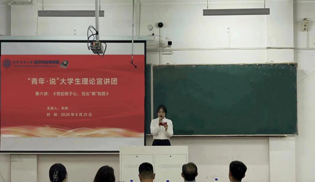 宣讲会上,宋昕以“党纪铭于心,当出‘棋’制胜”为主题,将党纪学习比作一盘棋,围绕力稳“本手”、力争“妙手”、力戒“俗手”三个方面展开宣讲。她指出,“万物皆有序,有法天下和”,党纪是管党治党的“戒尺”,也是党员干部约束自身行为的标准和遵循。同时,宋昕强调,作为新时代大学生,我们必须听党话、跟党走,加强自律、慎独慎微,以饱满的热情和扎实的作风,为党和人民事业贡献青春力量。