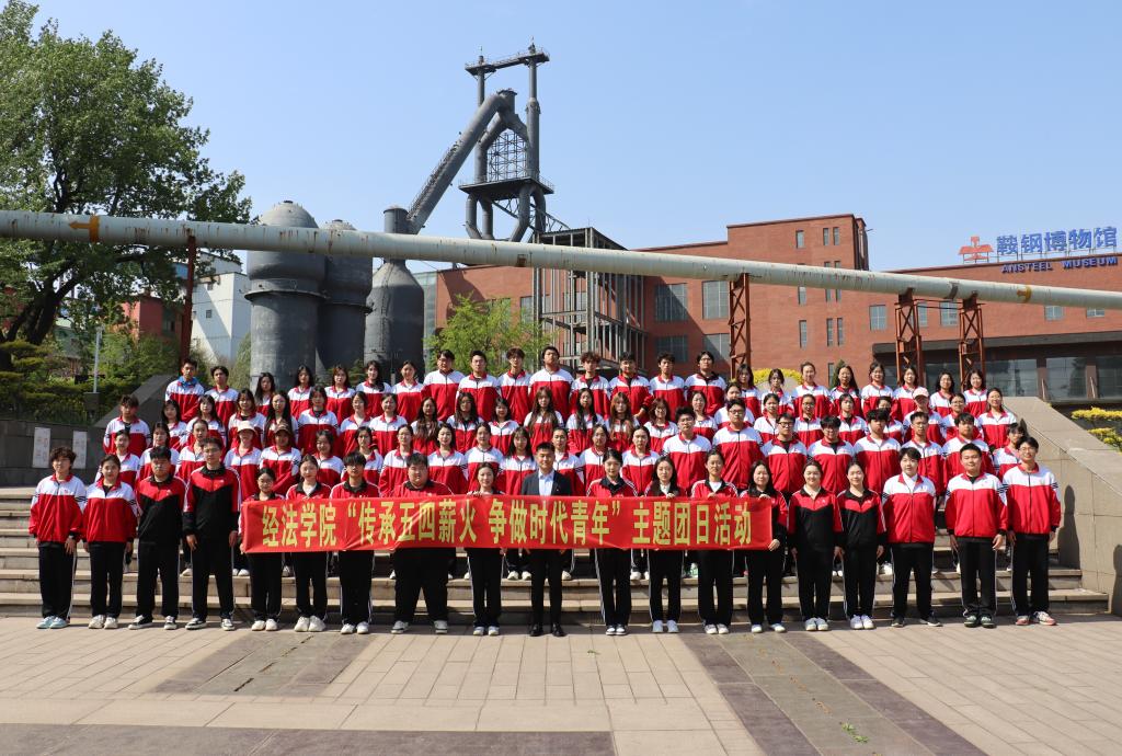 五四青年节来临之际,经法学院于鞍钢博物馆开展“传承五四薪火 争做时代青年”主题团日活动。经法学院团委副书记张鹏飞、团学骨干、法学24班以及金融24-1班全体团员青年共计91人参与了本次活动。