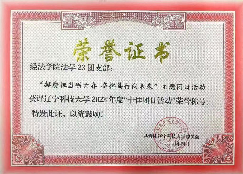 在社会实践和志愿服务方面,他一直以“有为、担当”为工作主旨,以“志愿服务”为工作抓手,带领大家将理论与实践紧密结合。他积极参与学院“小红帽”志愿服务活动,带领团员青年、法律协会成员定期深入南华街道化北社区、红岭街道中港花园社区、鞍山市“梦想之家”等地开展普法宣传活动,为社区居民在法律问题上答疑解惑,服务覆盖3000余人次。作为法律协会负责人,他多次组织参与模拟法庭系列活动。支部团员青年也在他的号召下,积极参与“返家乡”、扬帆计划、把我的大学带回母校、暑期“三下乡”等社会实践活动,真正做到了“实践育人成果好”。法学23班同时荣获开云官方网页版2024年度“学雷锋志愿服务先进集体”。