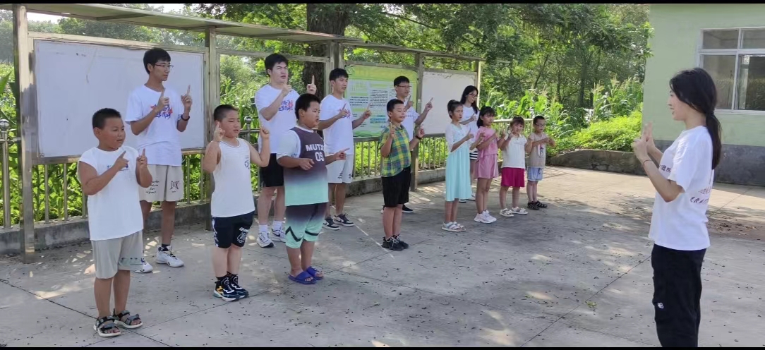 村里来了十几个“小老师”的消息很快就在山城村传开了。一时间,山城村村部热闹起来,乡亲们纷纷把自己家的孩子送到村部来学习,村部会议室变成了暑假小课堂。大学生志愿者们把来村部学习的学生分成高中、初中、小学三个小组,由不同的志愿者负责,每天上午帮助他们补习辅导文化课,下午给他们讲法治、军事、航天科技、人工智能等平时接触不到的知识,大大拓宽了孩子们的视野。课间休息时间,志愿者还带领孩子们学习手势舞、唱歌、打羽毛球等,让孩子们得到全面发展。
